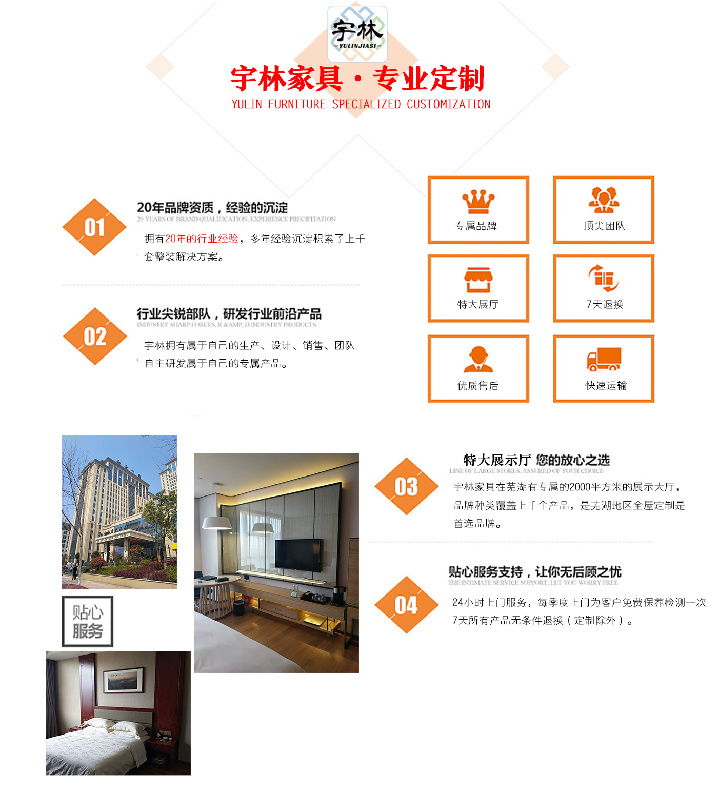 蕪湖宇林工貿(mào)有限公司創(chuàng)建于1996年,位于蕪湖高新技術(shù)開發(fā)區(qū)南區(qū),占地面積13000余平方米。是一個(gè)集研發(fā)、設(shè)計(jì)為一體的綜合性公司,公司主營整體家居定制、酒店家具定制、娛樂場所配套家具以及軟體系列,團(tuán)隊(duì),銳意革新、進(jìn)去不息的理念,逐漸成為蕪湖家具行業(yè)的生產(chǎn)廠家,并在2006年注冊了“宇林”牌商標(biāo)。宇林品牌家具依現(xiàn)代與古典相結(jié)合的多種實(shí)木家具、實(shí)木貼皮家具。家具做工精細(xì),多用人工雕刻;其自然、典雅的風(fēng)格在很大程度上引導(dǎo)著人...